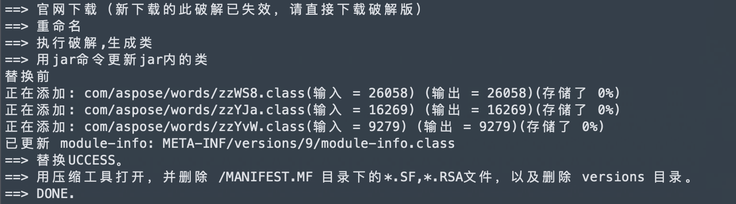 执行成功后如下图所示,并生成aspose-words-22.12-jdk17-cracked.jar文件。